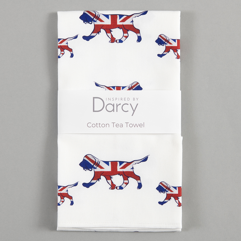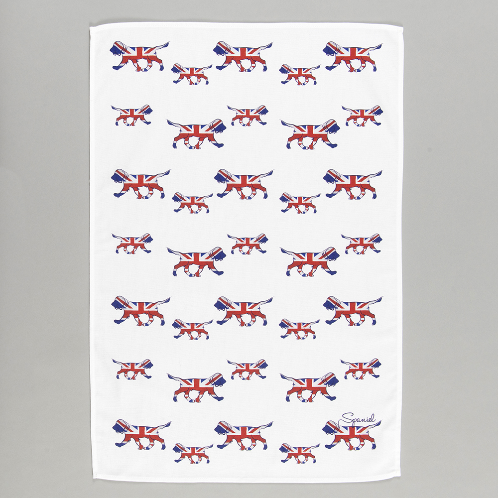 A limited edition cotton tea towel featuring our unique Union Jack Spaniel design. Perfect to use for all your drying up! They also make a wonderful gift for a proud patriotic owner of a Spaniel.